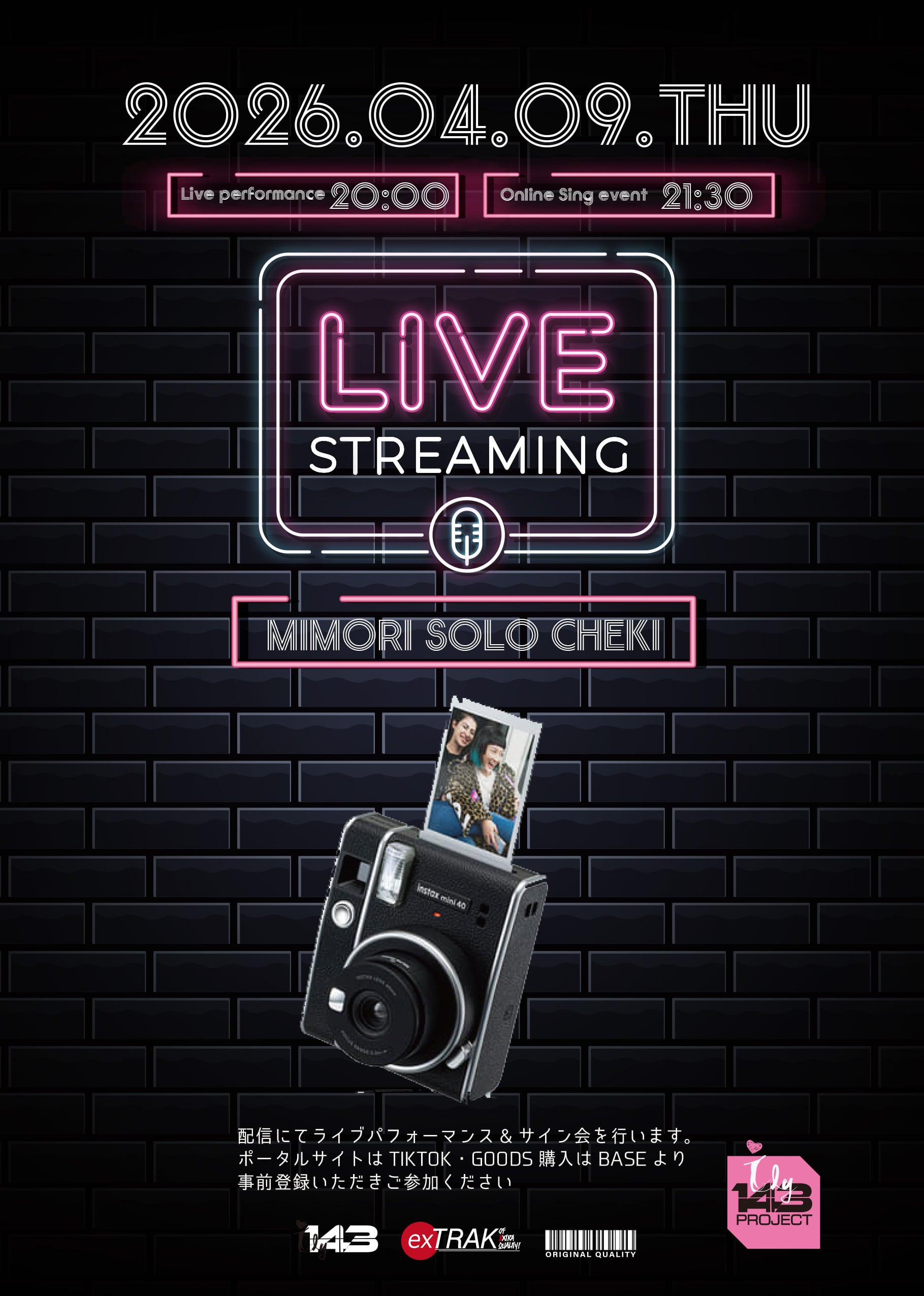 4月9日開催“Live Streaming vol.7”/MIMORIソロチェキを特別に販売!