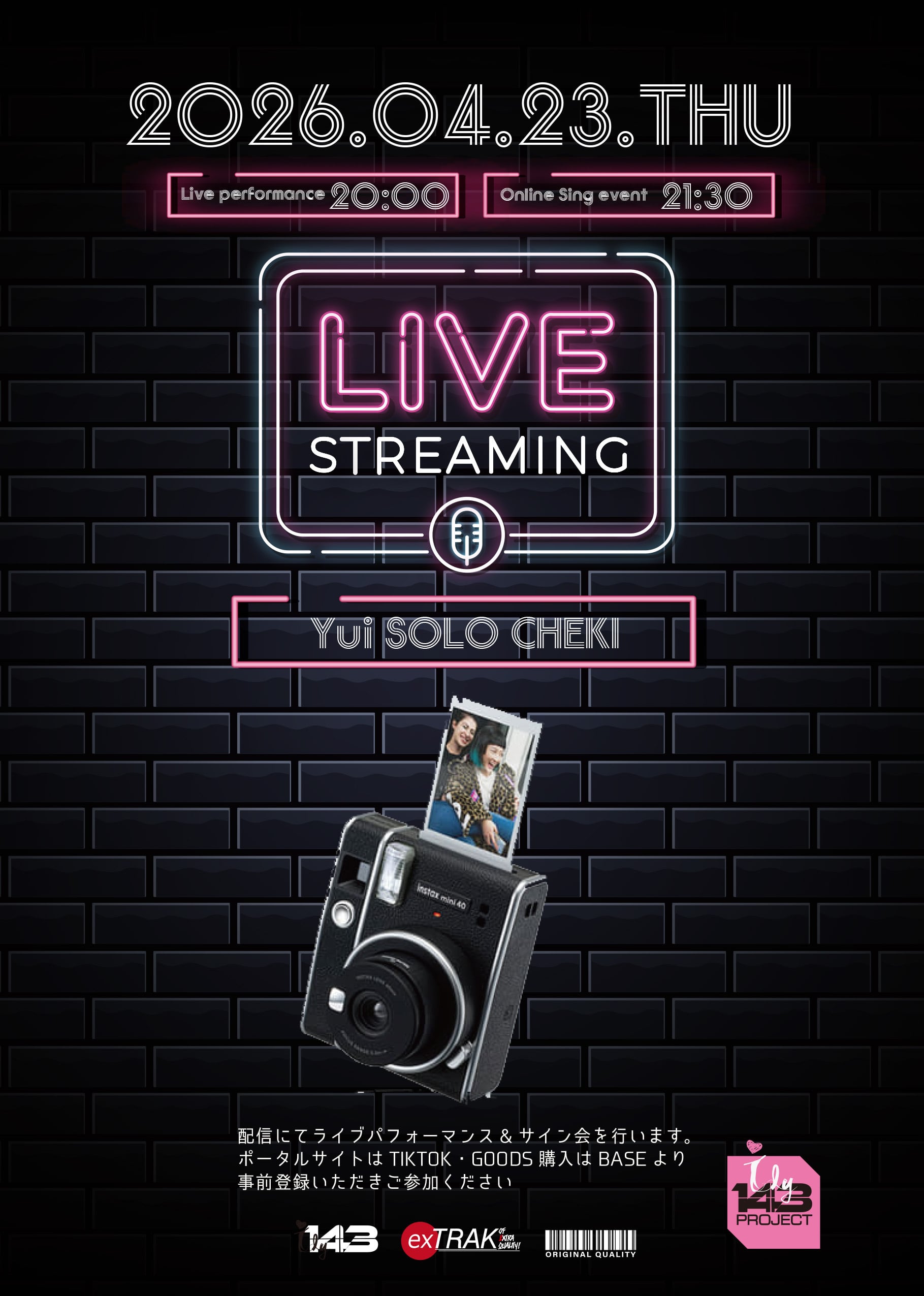 4月23日開催“Live Streaming vol.8”/ Yuiソロチェキを特別に販売!