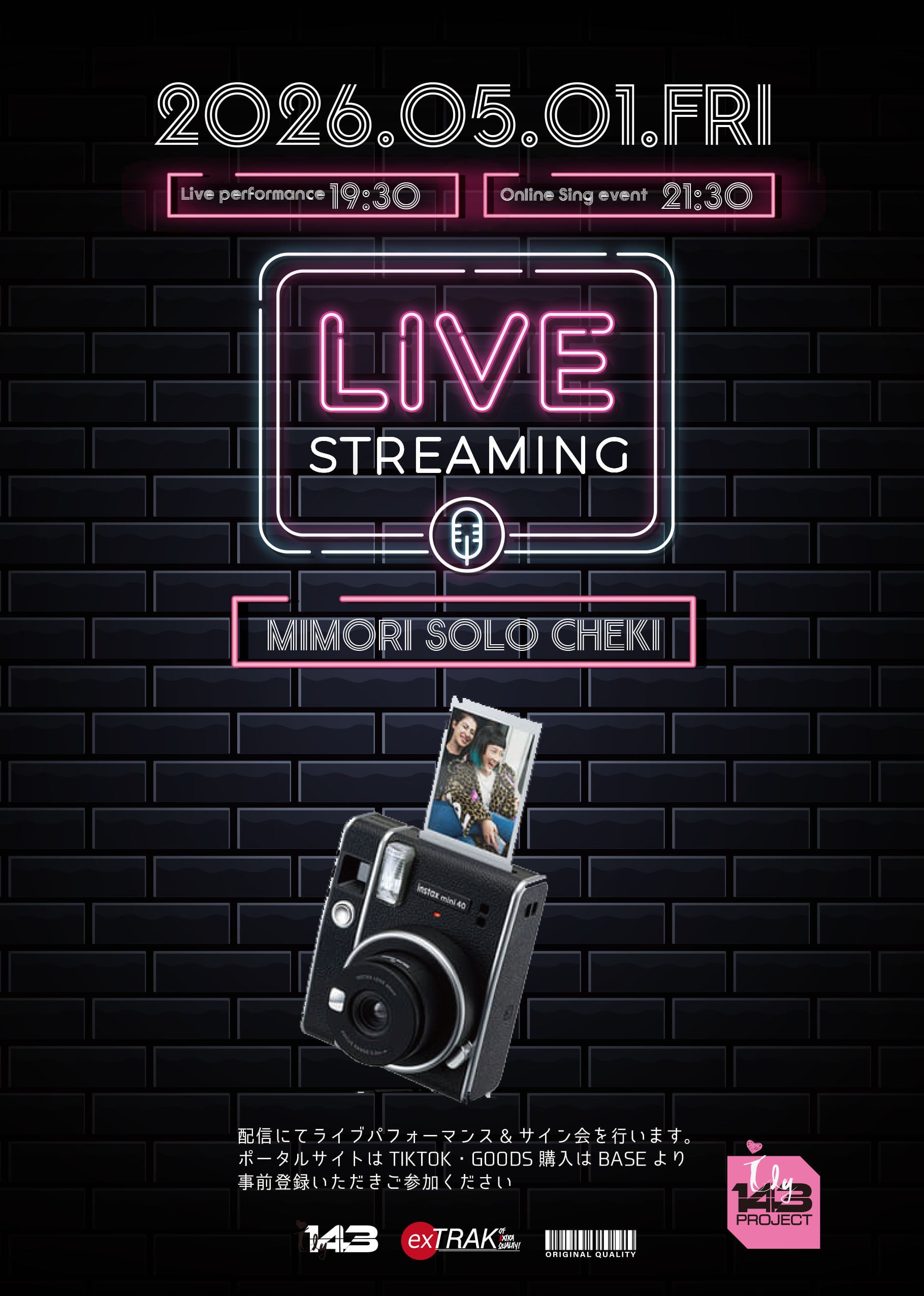 5月1日開催“Live Streaming vol.9”/ MIMORIソロチェキを特別に販売!